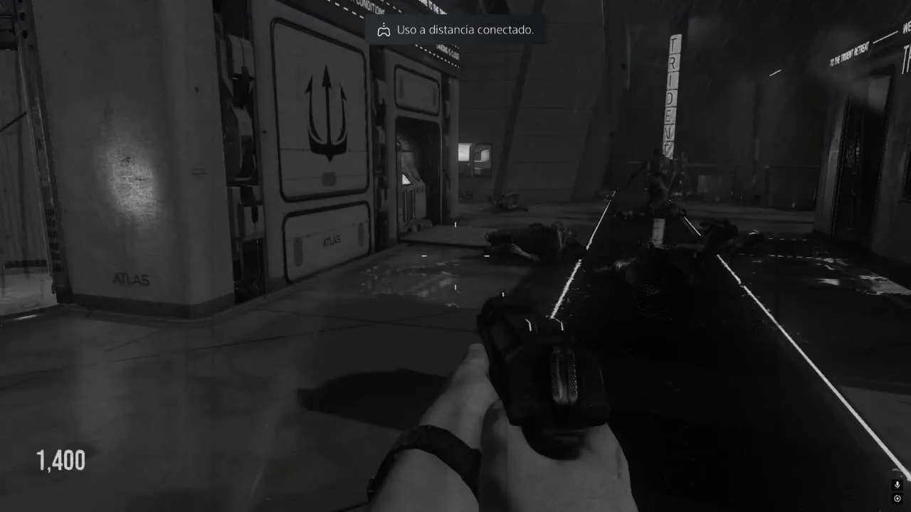 1. Al hacerlo, saldrás al exterior y podrás caminar debajo del agua. Continua el camino hasta conseguir un botón con una luz roja. Interactúa con este y vuelve a la puerta.