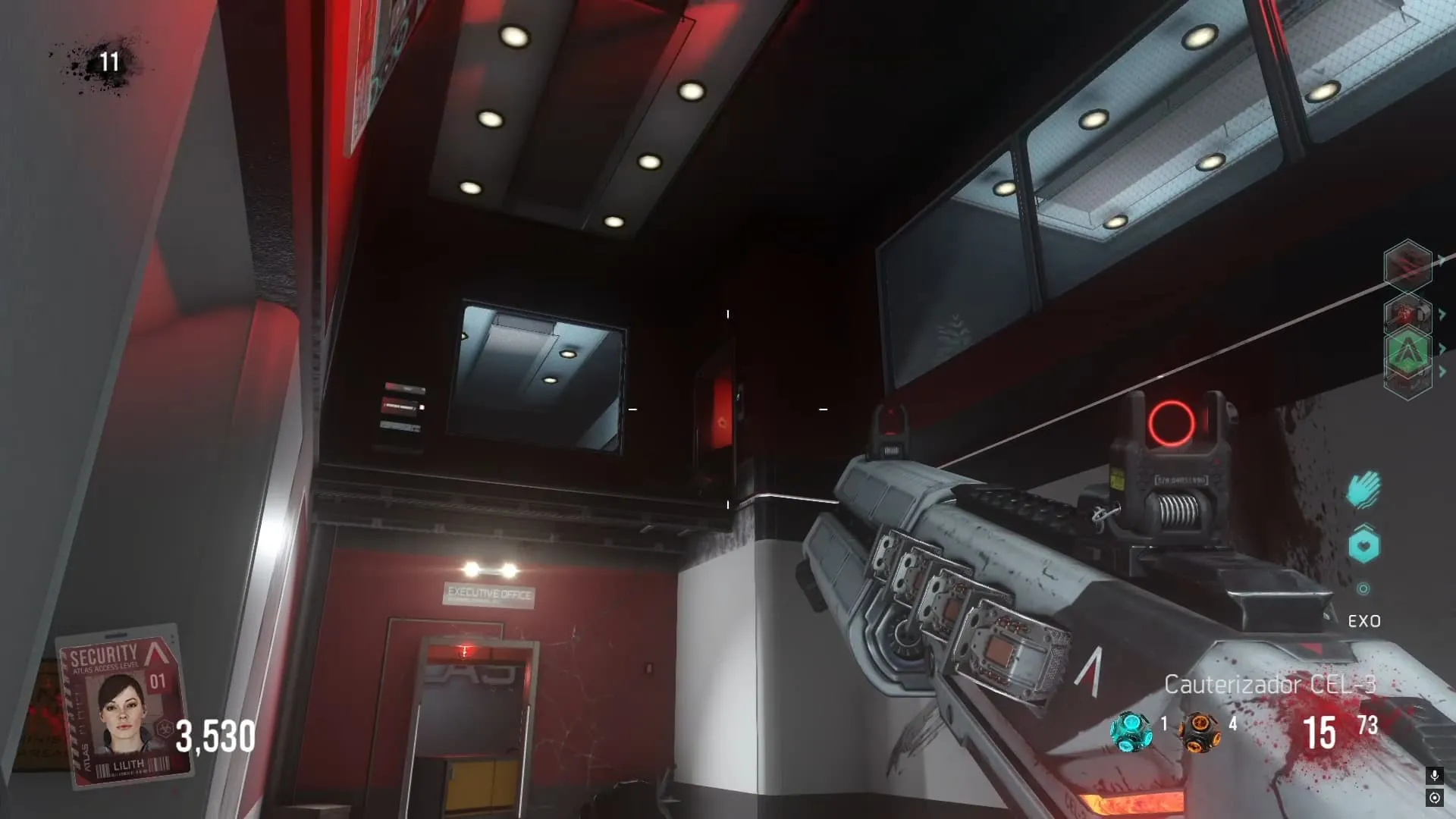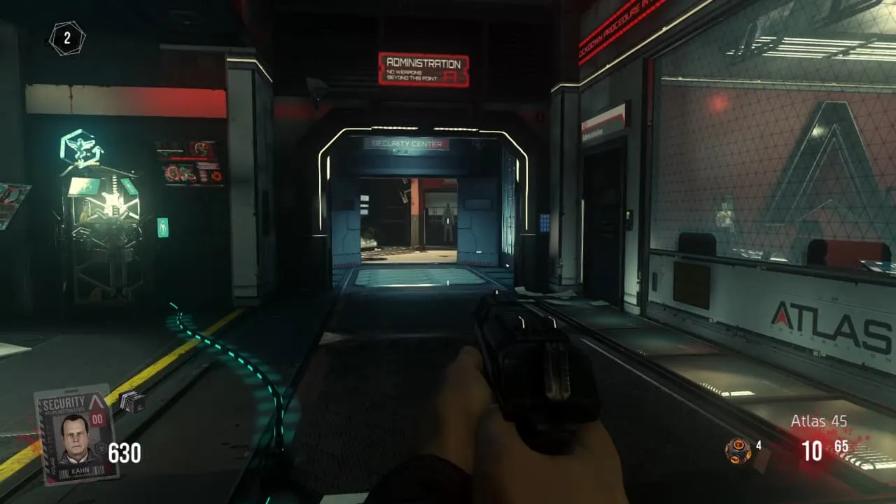 Llegaras a una zona que se ira cerrando lentamente. Debes disparar en el suelo mientras presionas el botón de interacción. No hay un lugar específico al que debes dispararle, la tarjeta puede conseguirse en cualquier lugar de esa zona. Si lo hiciste correctamente del suelo saldrá la tarjeta de Decker y se te sumara un nivel de autorizacion.