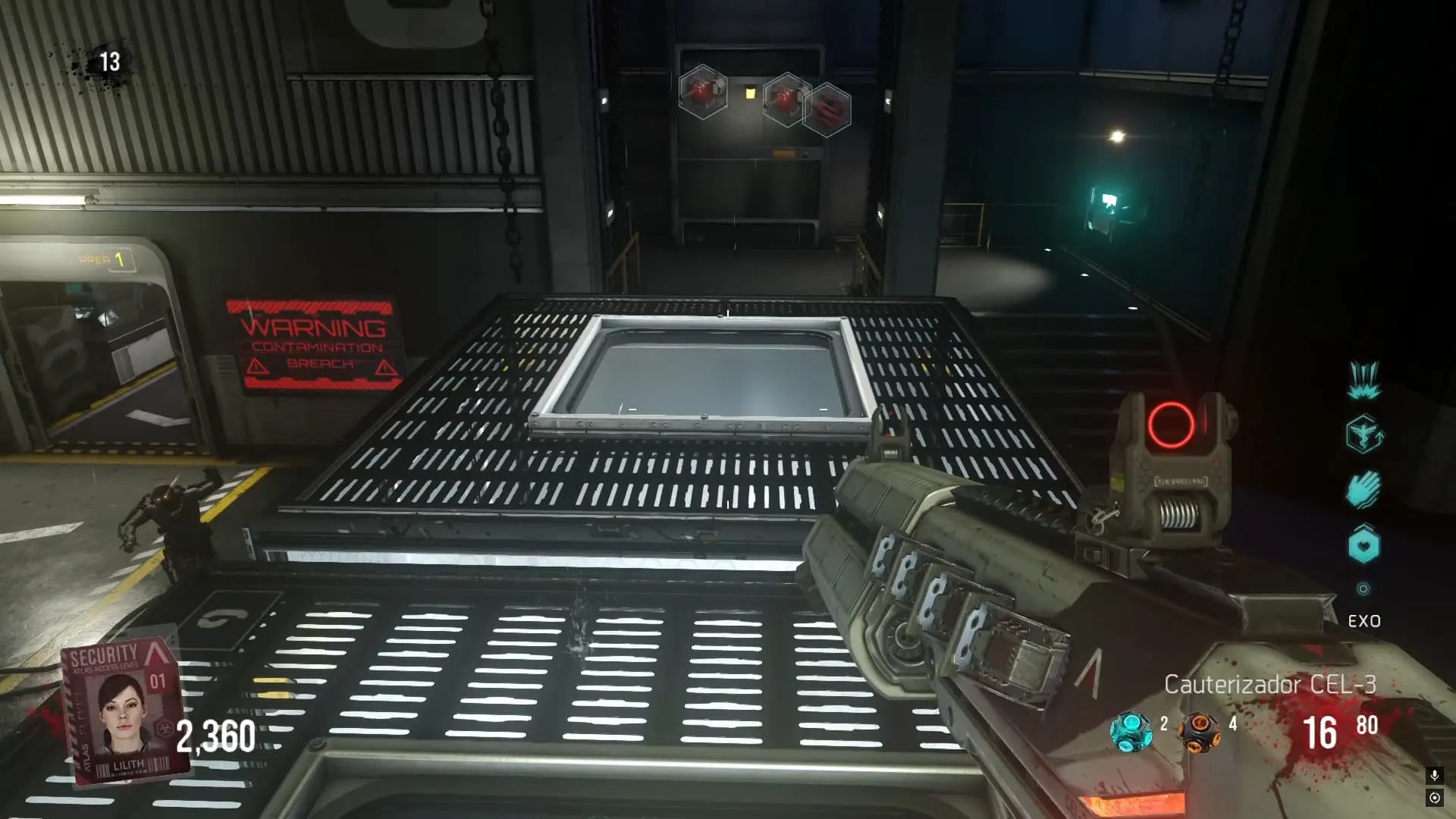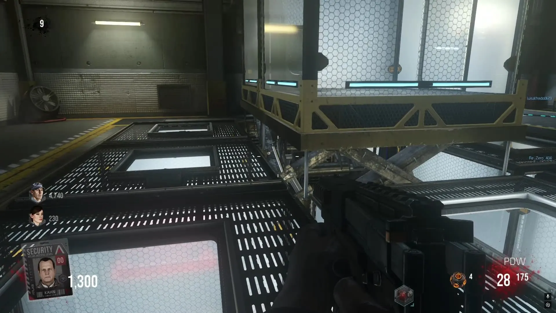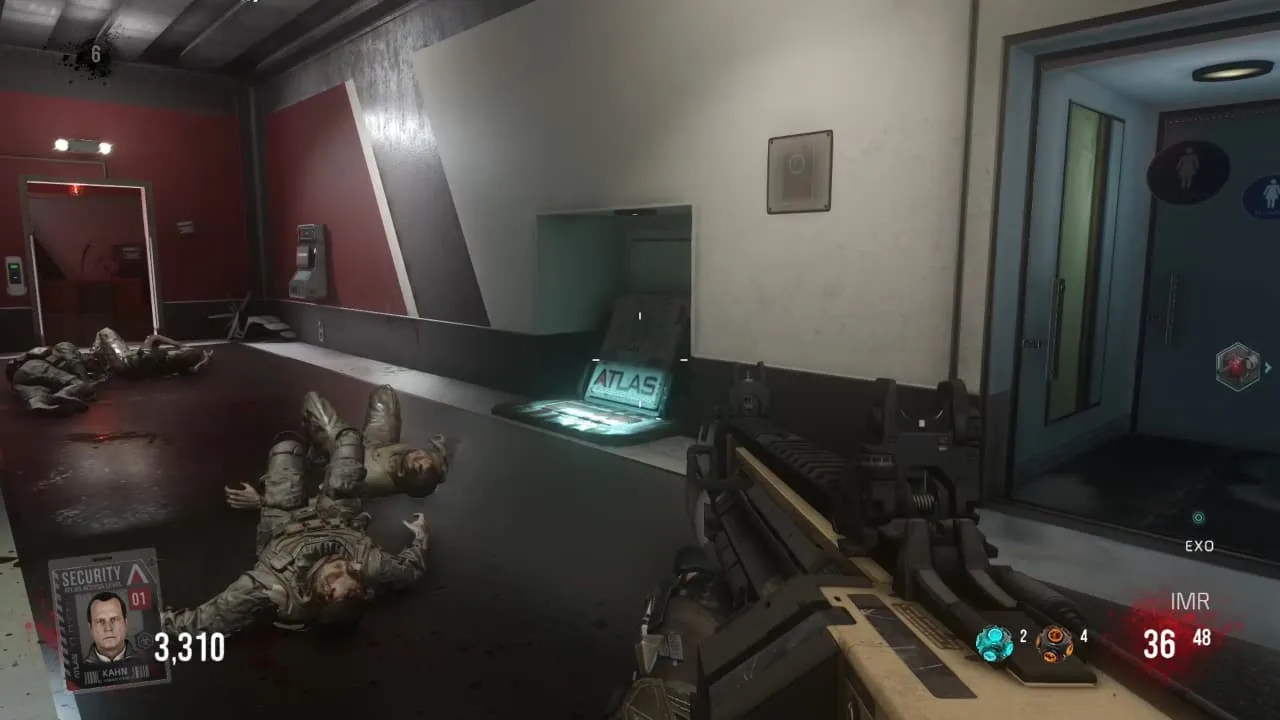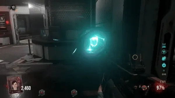 1. OZ. Debes ir a la Sala frente a Exo Salud (Juggernog) y veras dos celdas levantadas. Debajo de una de ellas sobresalta un soporte de metal que debes disparar hasta que se caiga.