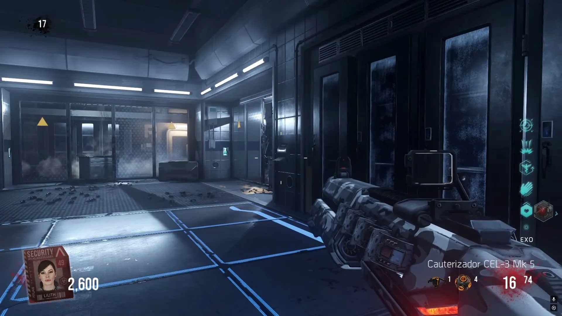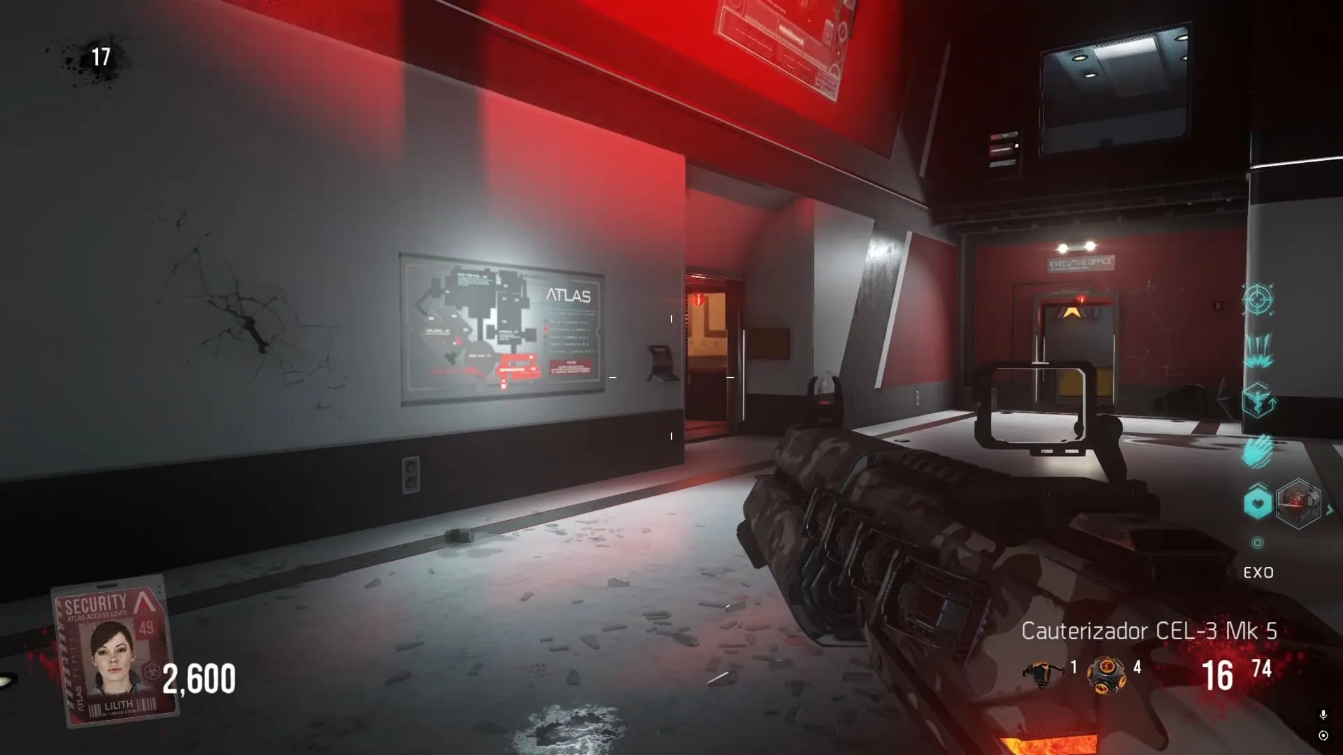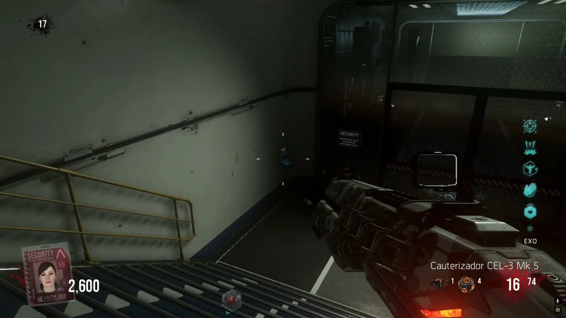 La última ubicación se consigue por el pasillo de la izquierda, al mirar hacia arriba en una plataforma que debes llegar usando tu Exo.