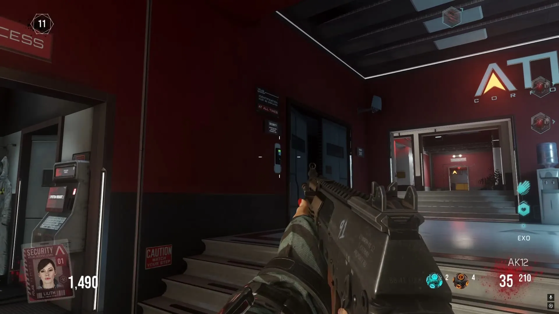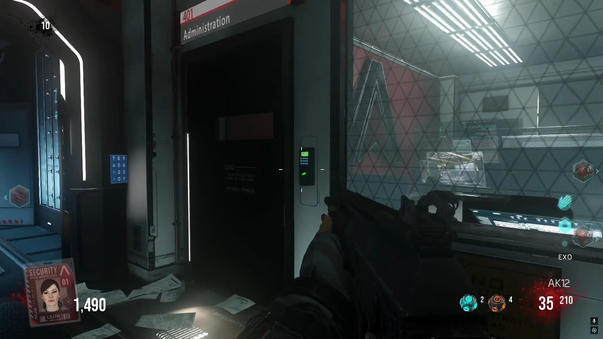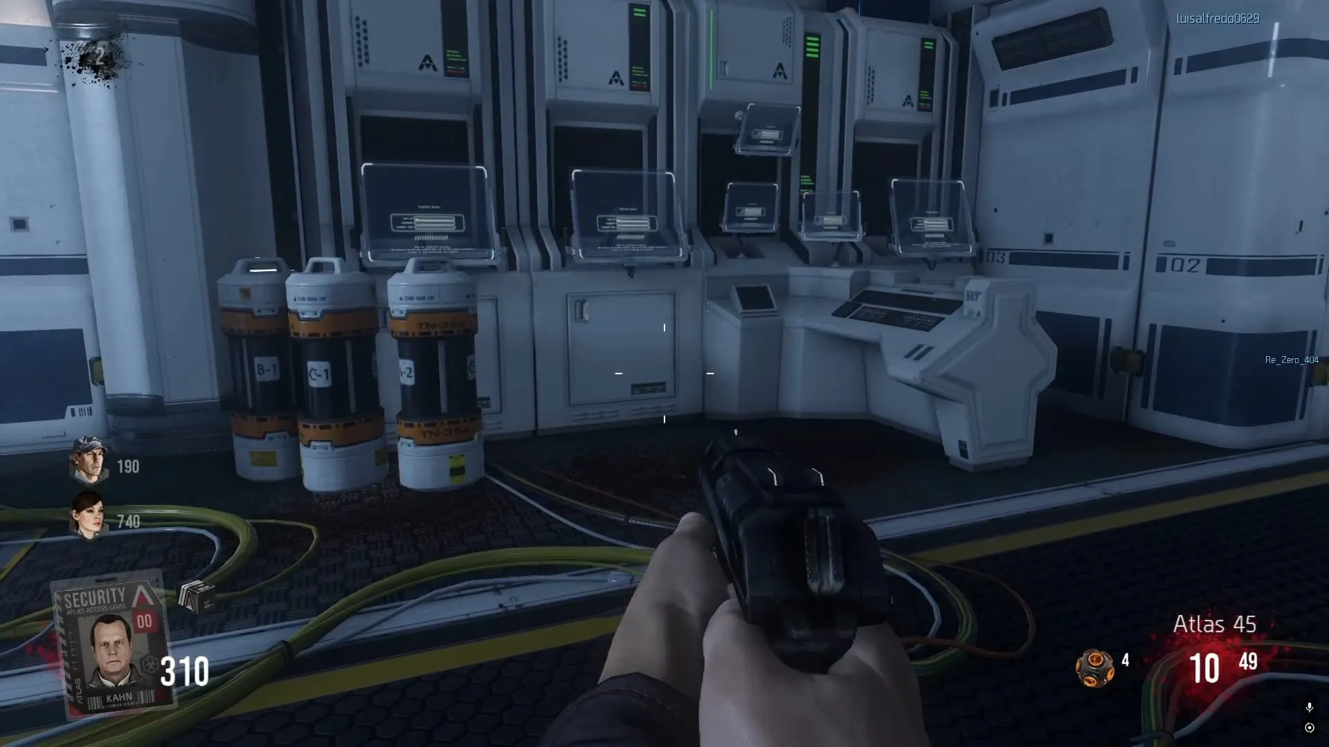 1. Al tener las 4 tarjetas de identificación, los zombies empezaran a soltar más tarjetas. Debes caminar sobre ellas y agarrarlas. Cada tarjeta sube un nivel de autorización de tu personaje. Debes matar hasta que tengas 49.