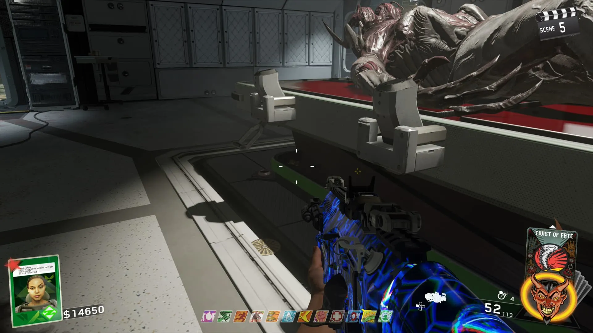 Dentro de la sala de Pack-A-Punch en una mesa de trabajo.