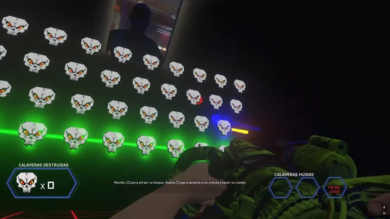 Al colocarte encima de esta, se activará un cráneo frente a ti de un color (Verde o Rosado)