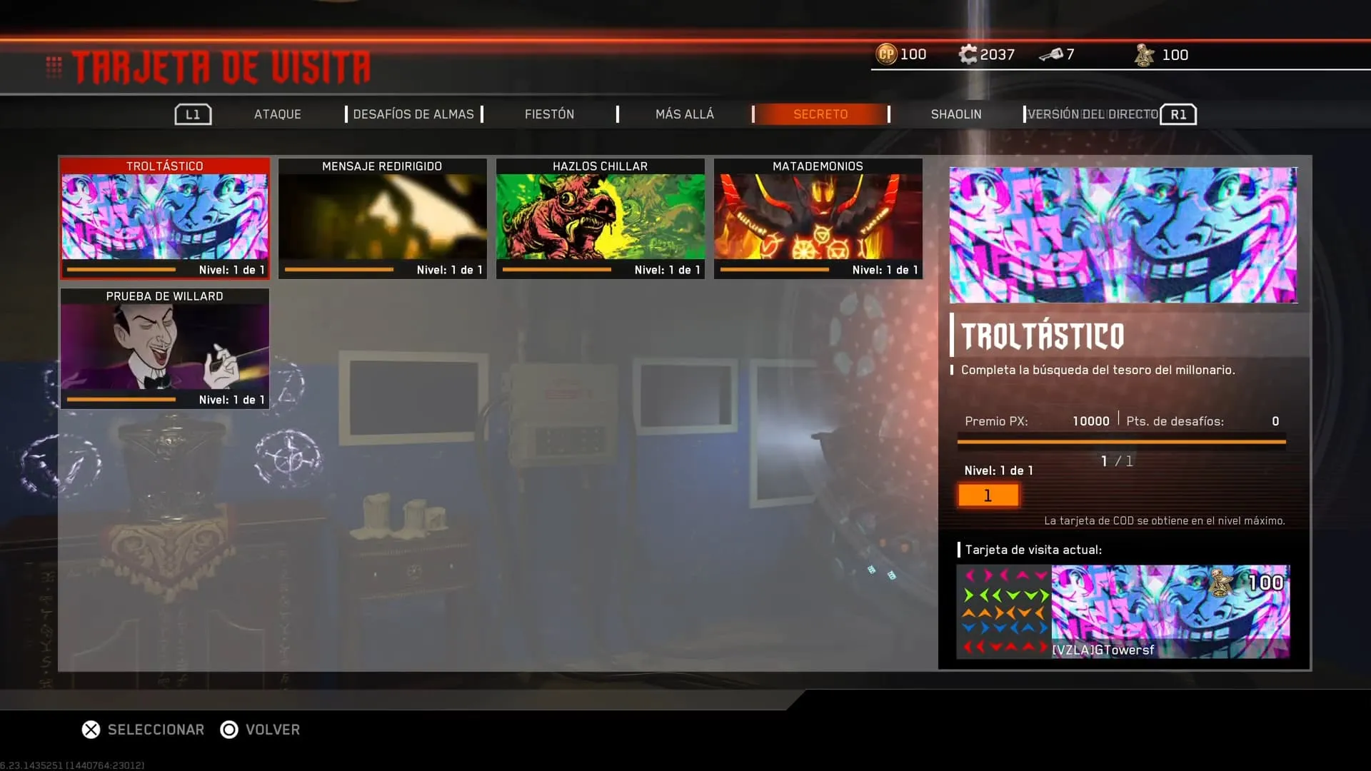- Podrás equiparte la Tarjeta de Visita en Desafío de Almas > Secreto.