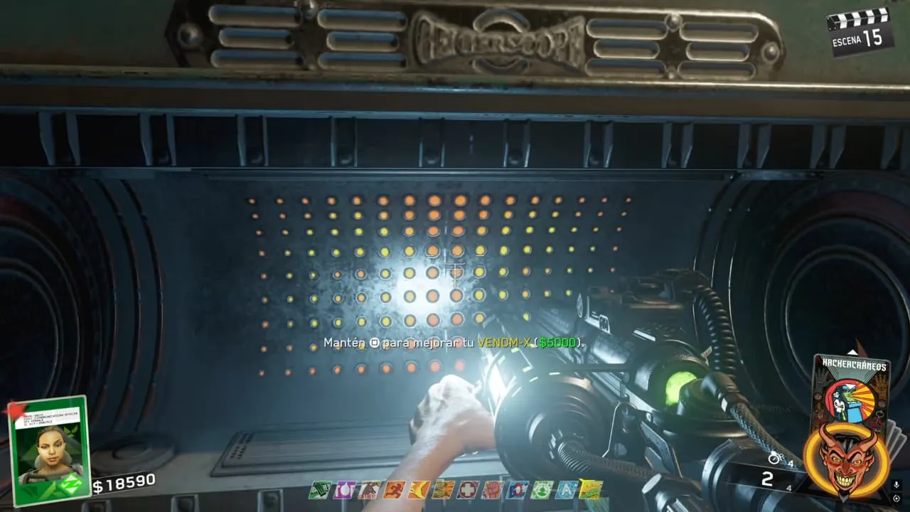 Para poder mejorar la Venom-X, debes llenar la barra de la Venom-Y hasta 100%, esto se logra matando críptidos. La cantidad necesaria es indicada en el código morse, dependiendo del número que te haya tocado, es la cantidad de Criptidos que debes matar