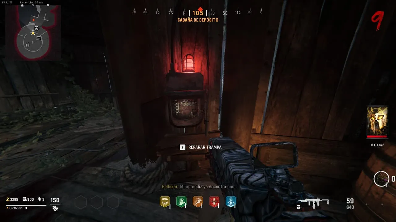 - Dirígete a Cabana de Deposito y empieza a matar Zombies utilizando la trampa eléctrica. Luego de utilizar la trampa, esta se romperá, coloca el fusible dentro de ella y continúa matando zombies